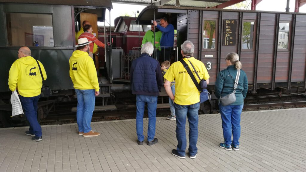 Bei den beiden Mitgliedern vom Hessencourrier in Kassel fühlten wir uns sehr gut aufgehoben. Es gab eine tolle Führung durch die Waggons des Zuges, über die Abstellflächen und den Lokschuppen.